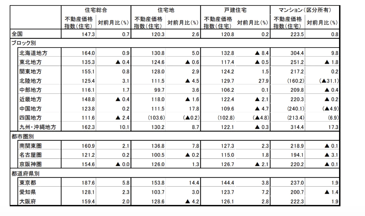 地域別に見ると、その傾向はより鮮明である。東京都のマンション指数は237.0と全国平均を大きく上回っており、日本の不動産市場が東京を中心とした一極集中構造にあることがうかがえる。地方都市でも価格上昇は見られるものの、そのペースは首都圏と比べて緩やかであり、地域間の価格格差は今後も拡大する可能性がある。