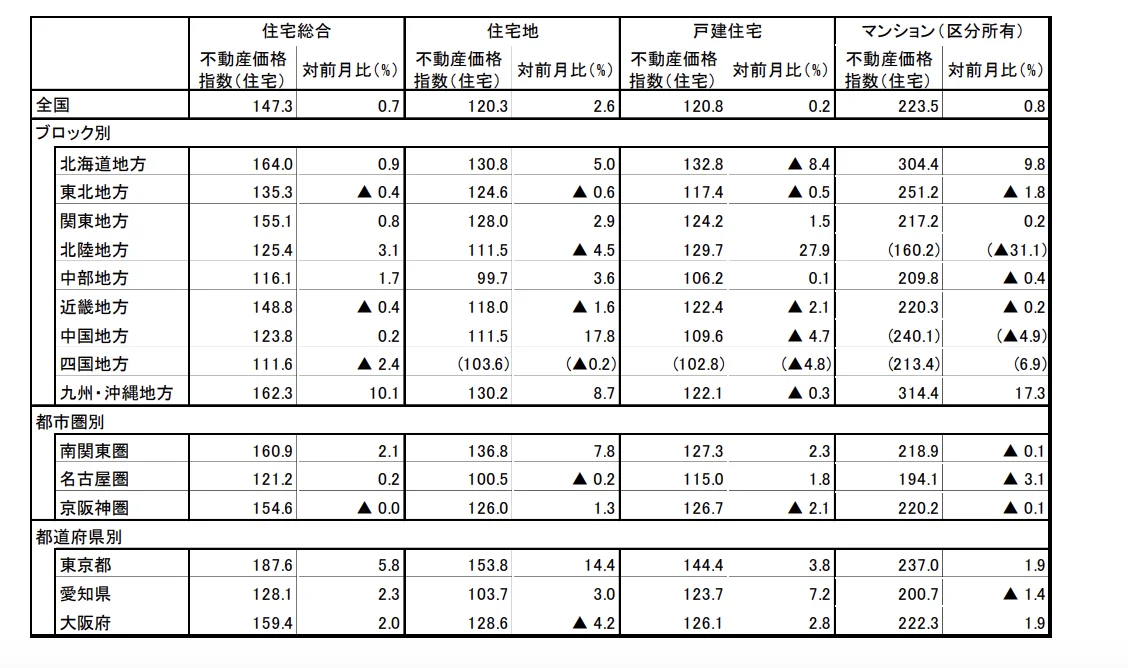 This trend becomes even clearer when viewed by region. Tokyo’s condominium index has reached 237.0, significantly above the national average, indicating that Japan’s real estate market has a highly concentrated structure centered on Tokyo. Although price increases can also be observed in regional cities, the pace is clearly slower than in the Tokyo metropolitan area, and the price gap between regions may continue to widen going forward.